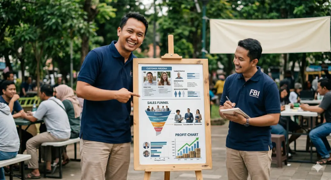 Ini langkah paling penting, tapi paling sering dilewati. Banyak pebisnis bilang target pasarnya “semua orang”. Padahal kalau targetnya semua orang, artinya kamu gak narget siapapun.